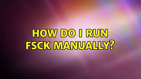 How To Run Fsck Manually. While normally run at boot time, fsck can run manually. The filesystem shouldn't be mounted while running the fsck.